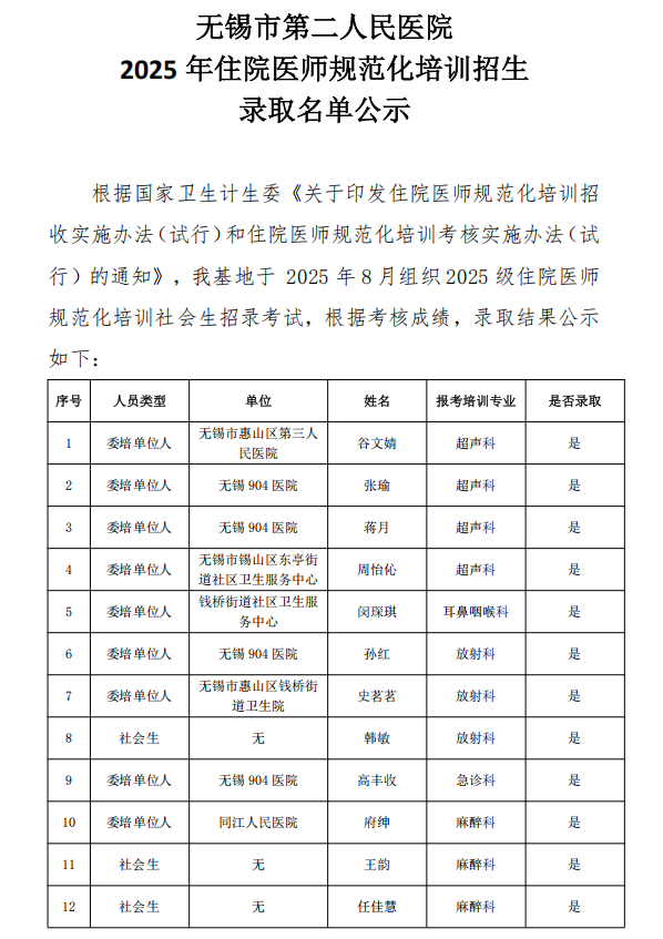 51视频 2025年住院医师规范化培训招生录取名单公示
